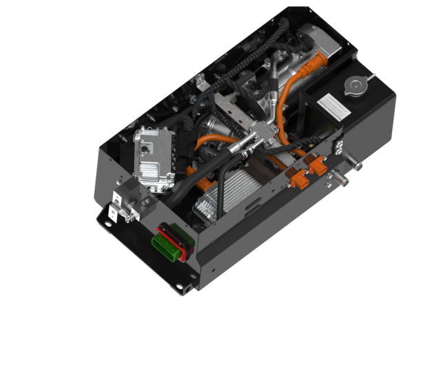 Our Thermal Management System regulates the temperature of the battery and additional drive system components while also supporting cabin air conditioning with R290 (Propane) or R1234yf. It includes a LightWeight Cooler for coolant cooling, a compact cooler for thermal storage, hydraulic and transmission oil cooling, and liquid-cooled cold plates for power electronics and battery systems.